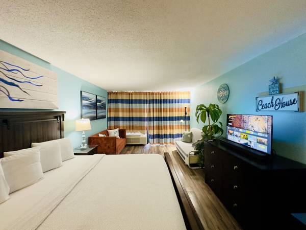 The search for your next vacation stops here! Check out this 14th floor, completely updated king suite located at the Landmark Resort in Myrtle Beach. This studio apartment is fully furnished with 1 king bed, a full-sized bed, and will comfortably accommodate 4 guests.