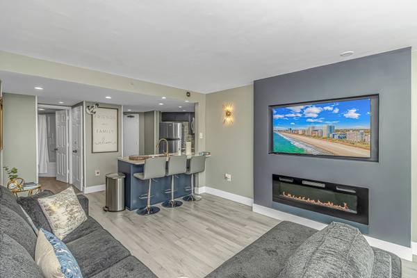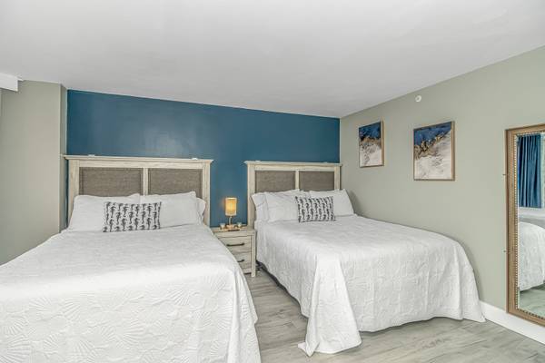 Check out this 3rd floor, ocean view condo at the Landmark Resort in Myrtle Beach. This ocean view 1 bedroom condo is fully furnished with 2 full beds, a sleeper sofa, and will comfortably accommodate 4-6 guests. This unique layout offers a luxuriously open living space just for our guests. Other rentals at the resort are much smaller, but this layout features a spacious floor plan that doesn't feel cramped! Our guests enjoy having their own private balcony where they can relax and enjoy a stunning side view of the Atlantic!