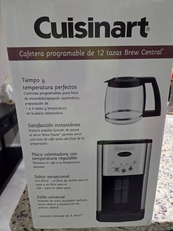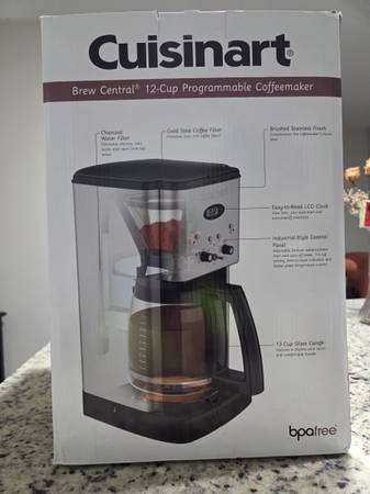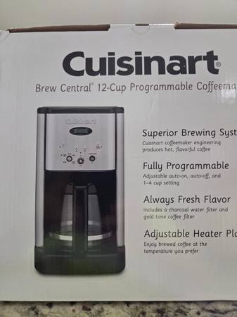 Cuisinart Brew Central 12 cup programmable coffee maker. Has temperature control, pause feature, 24 hour brew programming, auto shutoff classic stainless design. Brand new in box.