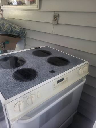 Slide in stove, not sure of year. Minimal rust on back as Pic shows. Pick up in conway.