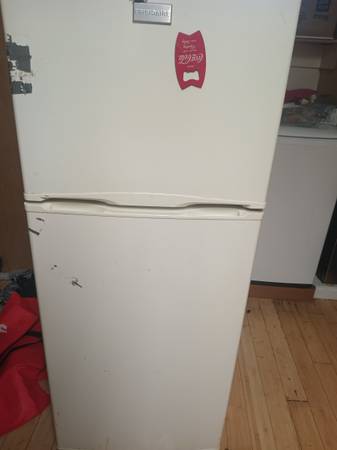 Perfectly functioning Frigidaire refrigerator. Stains on the front are duct tape residue hello