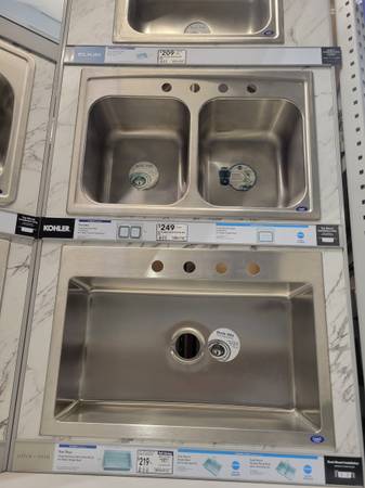 I am selling a few brand New kitchen sinks some in original boxes. A few Stainless steel, a couple heavy very expensive. All the standard size. Prices start at 100.00 also hundreds of plumbing fittings most copper all New. Make me a reasonable offer for one or all. Phone calls Only. 843-460-773two Thanks.