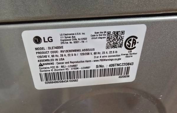 This LG Dryer is in like new condition. It has all the bells and whistles, including wifi. Has Easy load door that can open from the top and the side. Ultra large capacity and can handle comforters and other bulky items. Just don't need anymore. Graphite Steel color. Comes with power cord and dryer vent. Pick up in Myrtle Beach.