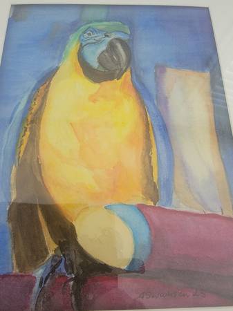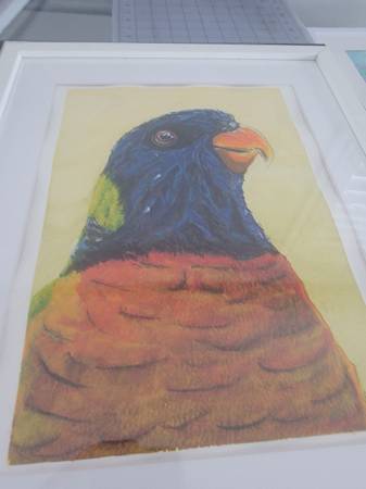 Hand painted framed watercolors of pet birds $30 -$50 depending on size. Work from photos.