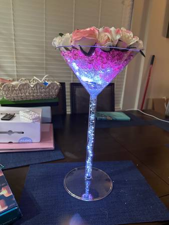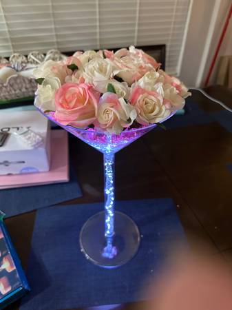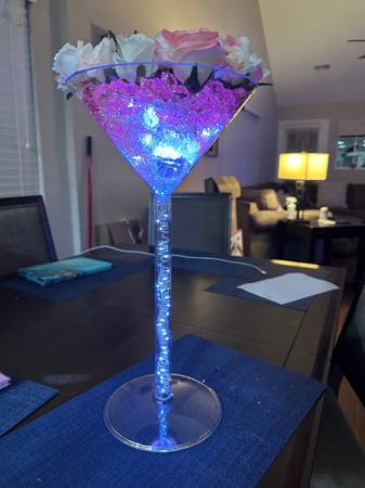 Wedding table center pieces. Martini glasses lighted Have 4 for 50.00 Cash and carry only