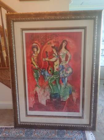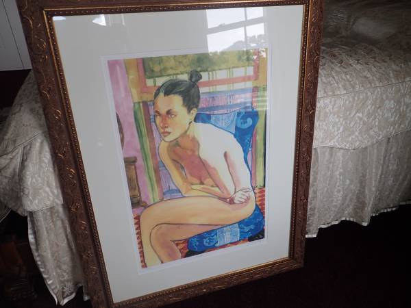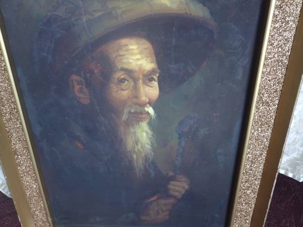 23"X30" framed. Signed Chan, 1960's oil of Chinese man smoking opium pipe.Have other works of art from this estate sale. Lots of collectibles. DVD's some from the 1980's. organic eggs $4.50. twin size sheets. More fine art. Lots of Christmas stuff. New plush and some New toys left. Coffee tables end tables. NEW size 12 sneakers $25. some clothes all in gently used condition. Hareware from the 1940's. Newly upholstered vintage couch for $650 asking $175.To much to list CALL landline NO texting. show contact info