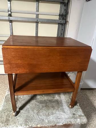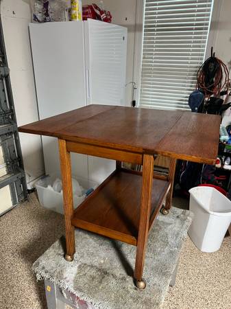 Gorgeous antique oak drop leaf tea or beverage cart. Add some class to your dining room or bar. Beautiful finish. $200 FIRM. cash only.