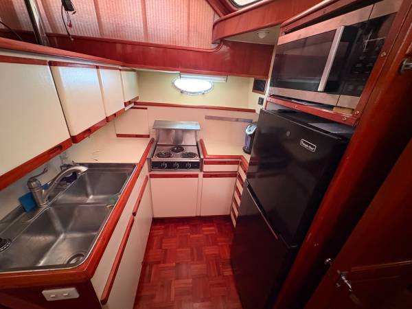 Looking for a spacious liveaboard or a boat to do the Great Loop? This 45’ Aquarius Aft Cabin Motor Yacht is solidly built, well-equipped, and designed for comfort. With two staterooms, two heads, and plenty of upgrades, it’s like a floating condo ready for adventure.