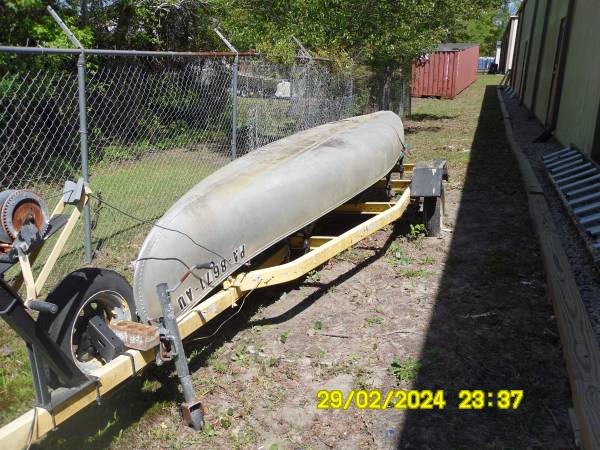 17 ft Aluminum 2 seater canoe with 2 wood paddles and boat trailer ,trailer needs little work ( galvanized trailer needs 2 fenders and lights need lens.) boat has 2 fold up seats and is in good...