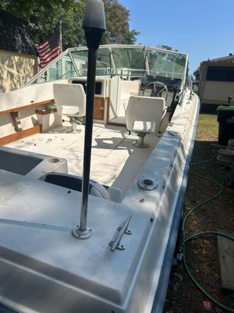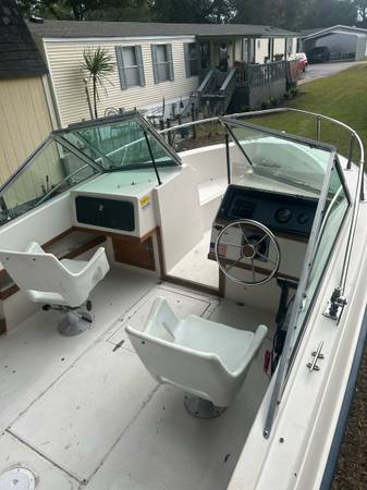 Johnson ocean runner motor has good compression. you must pre-mix your gas for this boat. lower end was just serviced stainless steel prop. solid transom.wiring has been gone