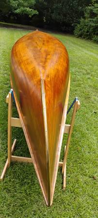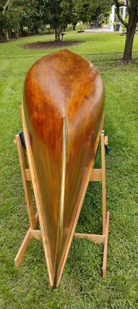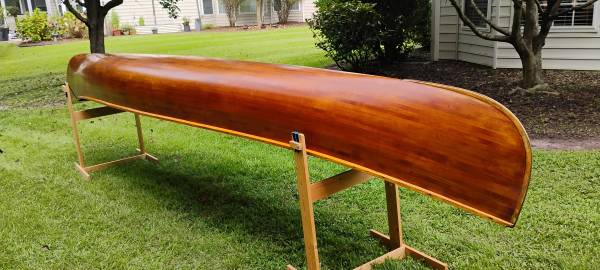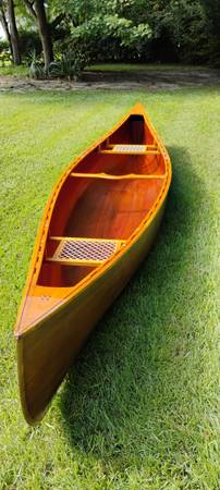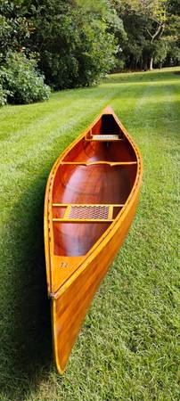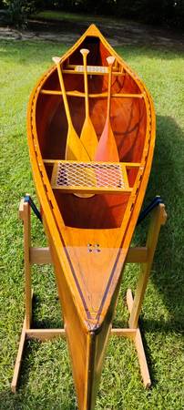 Beautifully handcrafted cedar strip canoe. W/anchor, 3 paddles, 3 life jackets. Must pick up and transport yourself.