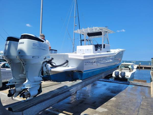 This reconditioned 31' Ocean Master is in excellent condition, its motors are under warrantee until 2027 with 200 hours on each 300 HP Suzuki's. the electronics are as follows: Furuno Auto Pilot, Garmin 8612xsv GMR18XHD GPS, 8612xsv Chart plotter / Sonar, GPS Garmin GMR 18 XHD Radar, Garmin B175L Chirp (2,000 Ft capability) 2 each Icom M400BB with black Command Mic, 2 M400XT Shakespeare VHF, New Custom Transom with live wells
