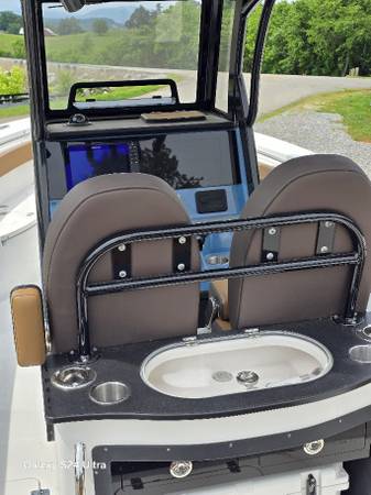 Helm/Top Fiberglass Hard Top Windshield Enclosure Second Livewell 12 gal. Console Glass Bridge Simrad Touchscreen MFD 12″ Thru-Hull Transducer Digital Switching Power Steering w/Tilt Helm Sea Pro...
