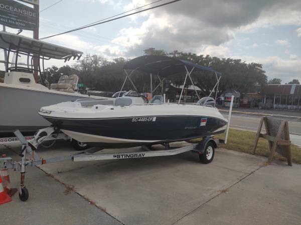 Stingray, 192 series real clean, upholstery is new,comes with 150 Yamaha 200 hours, Bimini top, drive on trailer, blue and white, bow seating