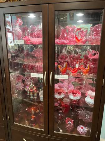 FENTON GLASSWARE - WE HAVE A HUGE SELECTION IN VARIOUS COLORS - We have several display cases full of Fenton Glass. Come on in and check out our ever-changing selection! Rarely do you find this much in one place!!!