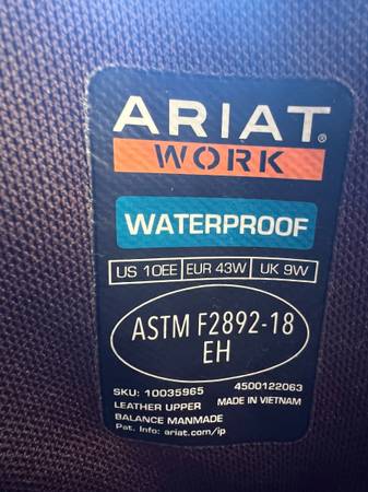 Selling my Ariat Work Waterproof EH Boots, size 10EE (wide). Only worn one time – basically brand new! ✅ Waterproof ✅ Electrical Hazard (EH) rated ✅ Super comfortable wide fit ✅ Built tough for job...