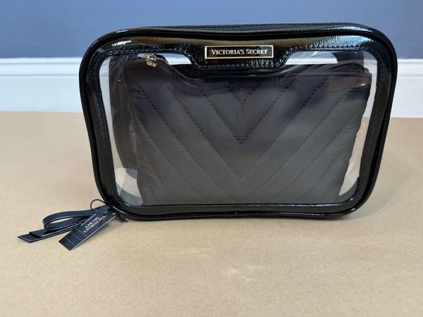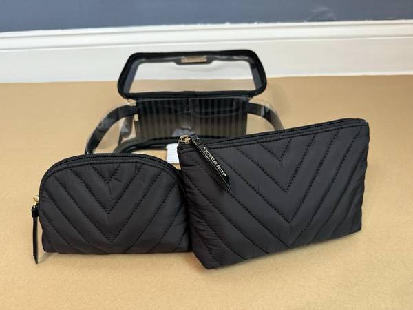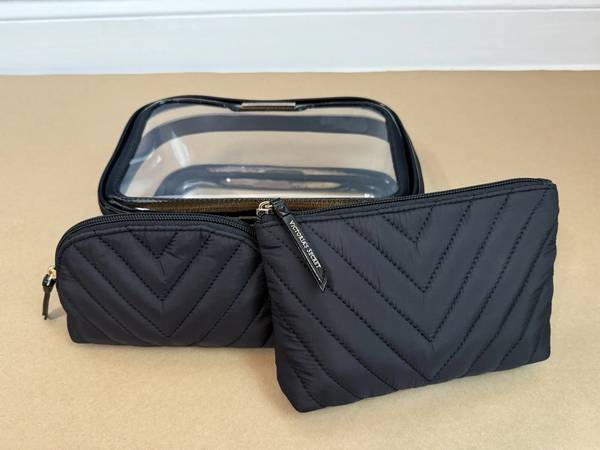 Victoria’s Secret BLACK / CLEAR 3-piece Makeup Cosmetic Bag Set -- BRAND NEW!