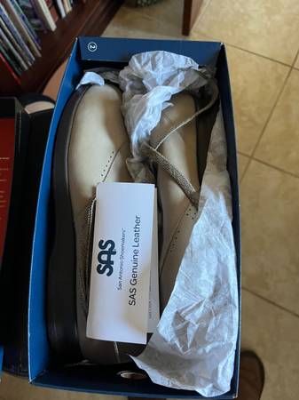 Women's SAS Free Time walking shoes, color Sage, size 11 1/2 M. Shoes were worn one time while she was in a wheelchair at an event. So, there are no wear marks. Nonsmoking house, still in orig. box...