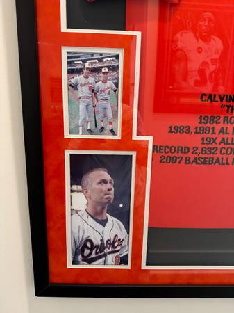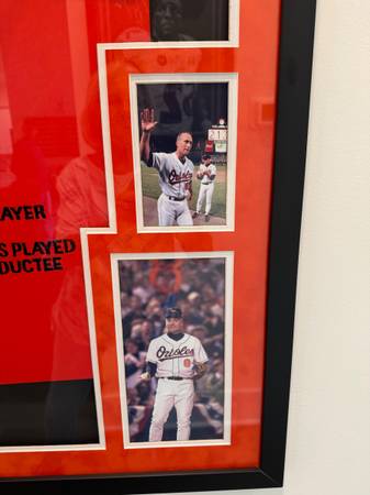 Cal Ripken signed orange jersey collectible with 4 pictures nicely framed. James Spencer Authentication, LLC, certificate # WP747566,
