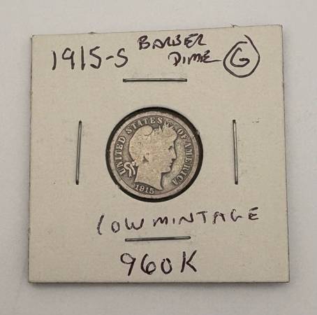 1915 S Barber Silver dime - 2 avail. - $25 each