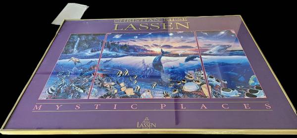 This vintage artwork by Christian Riese Lassen, titled "Mystic Places," is a stunning print that is sure to add character to any room. Produced in 1991 and framed, this piece is a perfect addition to any art collection. The artwork originated in Japan and is a great example of the unique and beautiful art prints that were produced during this time. The print is in excellent condition and will make a great addition to any home or office.