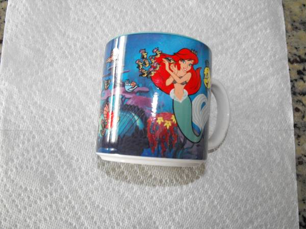 DISNEY LITTLE MERMAID MUG NEW CONDITION NEVER USED COLORS BRIGHT AND VIVID NO CHIPS OR CRACKS A GREAT CHRISTMAS GIFT $35.00 A TRUE COLLECTORS ITEM LOCAL PICKUP ONLY