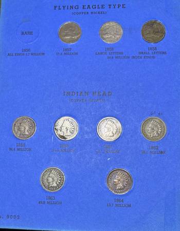 Indian Head Penny Collection (Cent) Book Contains 55 Indian Head Coins, missing 2 Book contains all Indian Head Coins from 1859 - 1909 (Just missing the 1877 & 1909-s) Includes the rare 1908-s,...