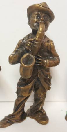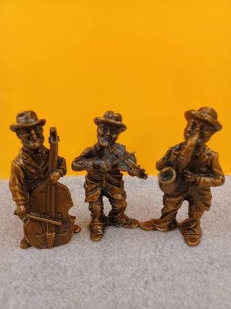NEW: This is a set of New Orleans jazz musicians figurines made of pewter. They are designed in a bronze color finish, perfect for collectors of music-themed figurines. These figurines likely depict musicians playing jazz music, reflecting the vibrant culture and music scene of New Orleans.