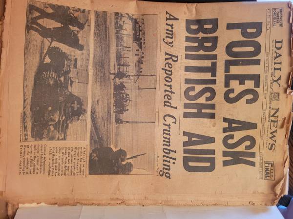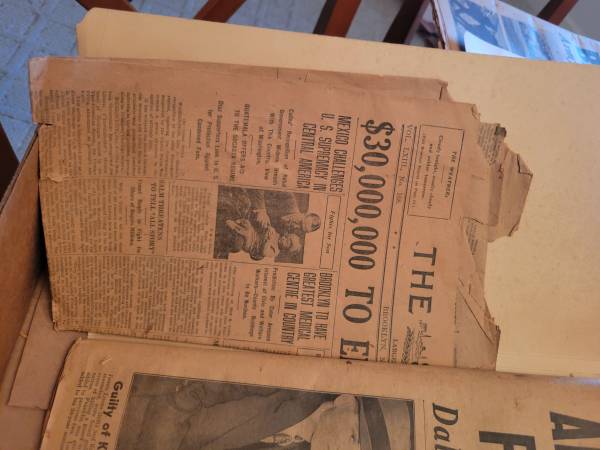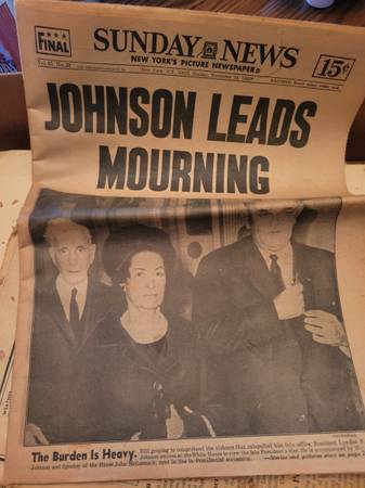 I have a few original newspapers from the 1930s, Kennedy assassination 1963, Bob Kennedy 1968 and more some in good condition some very brittle. Got them from the attic. Make me an decent offer....