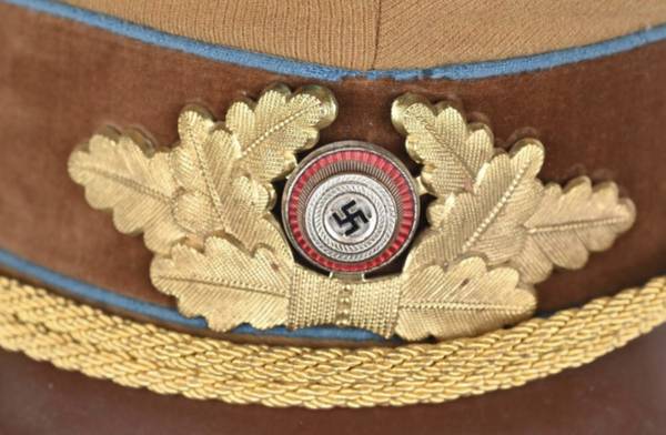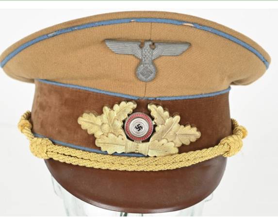 Original NSDAP Political Leader Visor Hat. 1939 pattern Ortsgruppe level. RZM oilcloth tag is present.