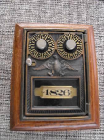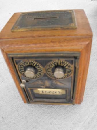 VINTAGE OLDE TYME REPRODUCTION DOUBLE LOCK POST OFFICE LOCK BOX COIN BANK PRE OWNED VERY GOOD CONDITION PASSWORD KNOWN ASKING $25.00 OBO