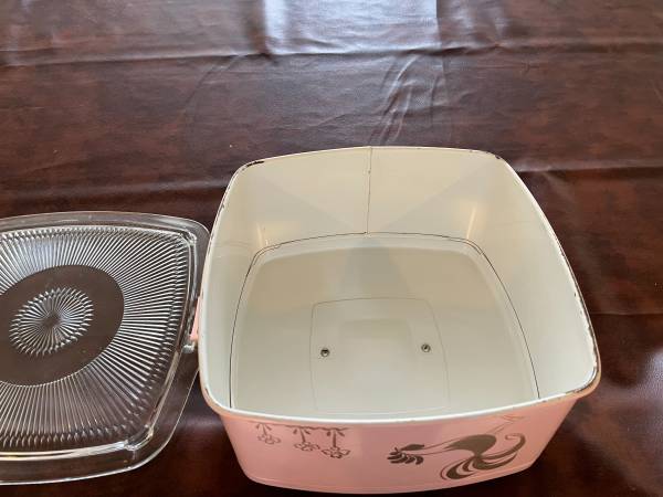 This is 1960's, the plate is glass and the clips that hold the lid on and these