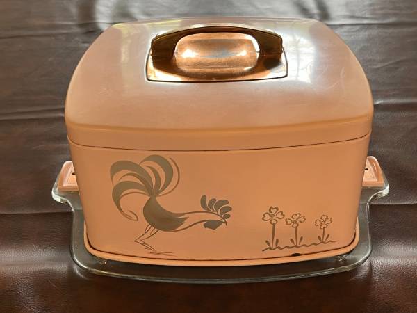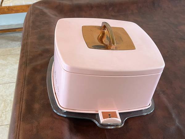 For Sale: Vintage Square Cake Carrier Metal with Glass Plate & Locking Lid.