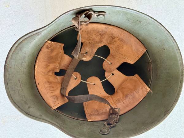 Camouflage is still in good 75% condition. Chinstrap and liner are both present