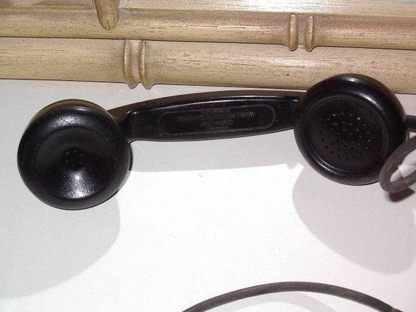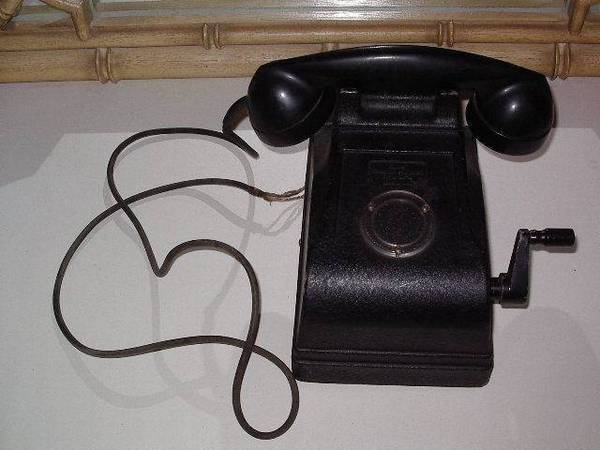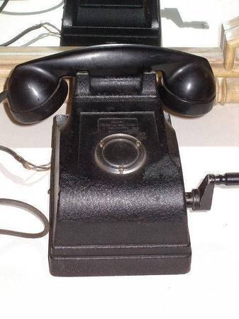 Manufactured by Federal Telephone and Radio Corp, U.S.A. Appears to be housed in a die-cast metal case, finished in a matt black crinkle paint. Not tested so please assume it does not work! Frayed cord (at base and handset as shown). Loose bottom. Crank turns but hard to do so and does not ring. Very Heavy! Great Collectible.