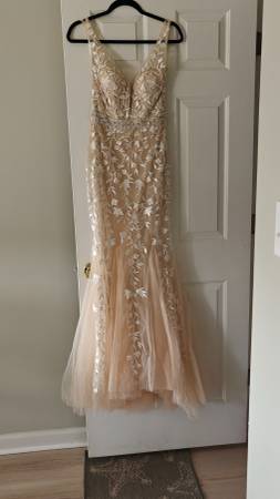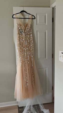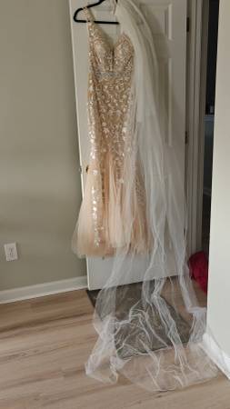 Formal gown can be used for a wedding dress a prom or any special event will sell the veil separate.size 6-8 by spiegel designer. Never worn 850.00 for the gown 150.00 for the bridal veil