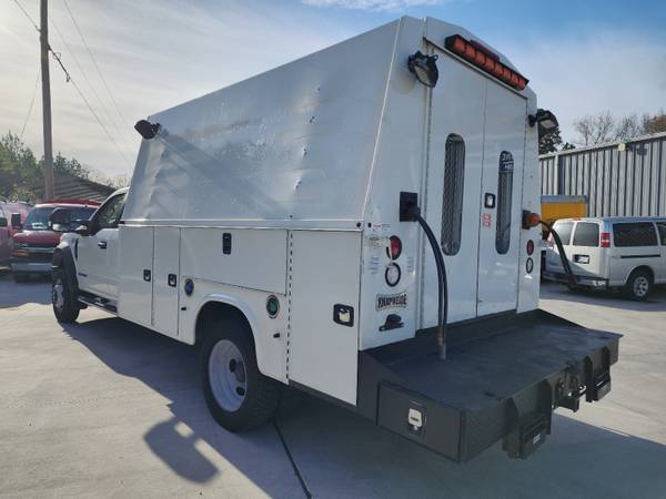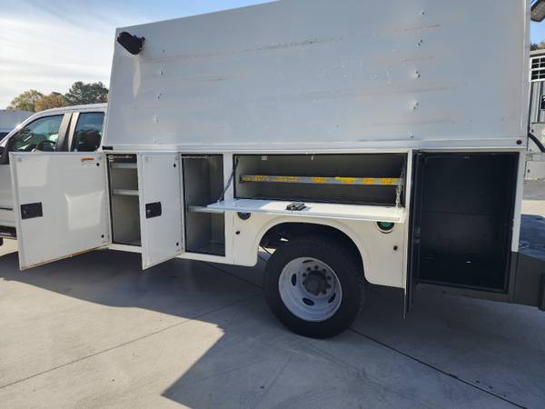 OPTIONS: GVWR 19,500 LBS, 11ft Box, Grey Cloth Interior, 6 Seater, Manual Front Seats, A/C, Heater, Climate Control, Power Mirrors, Power Windows, Power Door Locks, Rear View Camera, Stand Up Interior Height in Box, Heavy Duty Door Hinges on Exterior Access to Storage Areas From Both Sides, Worktables and Shelving Inside Box, Extended Rear Step Pad Platform, Step Bumper, Towing Package, Factory Built in Trailer Brake Control Module, Extendable Tow Mirrors, Cargo Area Lighting, LED and Strobe Service Lights, Front and Rear Traffic Director Lightbar and Controller, Dual Rear Wheels, PTO, Aux Hydraulic Fluid Holding Tank, Dual Hydraulic Hose lines, Spot Lights, Running Boards, many more options!!!