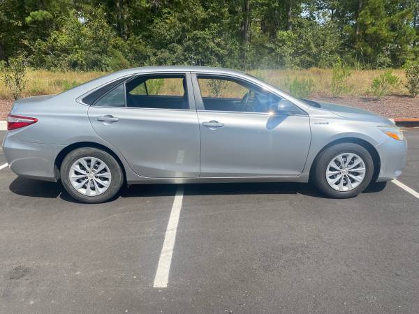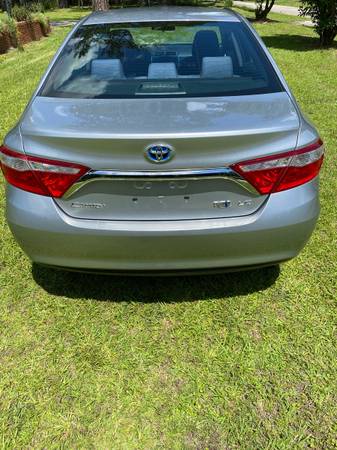 2017 Toyota Camry Hybrid LE is celestial silver metallic exterior with gray/black interior. Exterior is in excellent shape, interior has no tears or marks other than normal wear for an eight-year-old vehicle. This has a hybrid synergy Drive system, which has an average of 38 miles per gallon, Saving you $1000 a year in gas (based on the National average prices). It includes a 2.5 L, 4-Cyl DOH 16 Valve engine with EV and Eco energy saving modes. Power assist front/solid rear disc brakes, electric power steering. Star safety system: includes enhanced vehicle stability control, traction control, antilock brakes, electronic brake force distribution, brake assist in smart stop technology and 10 airbags. Exterior has 16-inch steel wheels with covers, projector beam headlights with auto on off, and daytime, running lights. Interior has eight way power driver seat with lumbar support, Entune audio: with 6.1 inch touchscreen, six speakers, Bluetooth, USB, AUX, CD. Back up camera, TFT multi-information, display, tire pressure monitor system, smart key system with push-button start, dual-zone auto climate control, two 12 V power outlets, one USB port, and one aux jack. Currently has 93,600 miles! I am selling this 2nd Camry hybrid now that I am retired and do not need both.