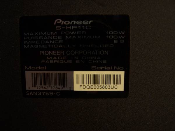 The Pioneer S-HF11C is a 2-Way Center Speaker with a frequency response of 55 Hz - 20 kHz and 100 Watt peak power handling. Featuring an impedance level of 8 ohm and 85 dB sensitivity, it produces clear sound. The width of this speaker is 15.75 inches. Also the options available to mount are: Bookshelf.