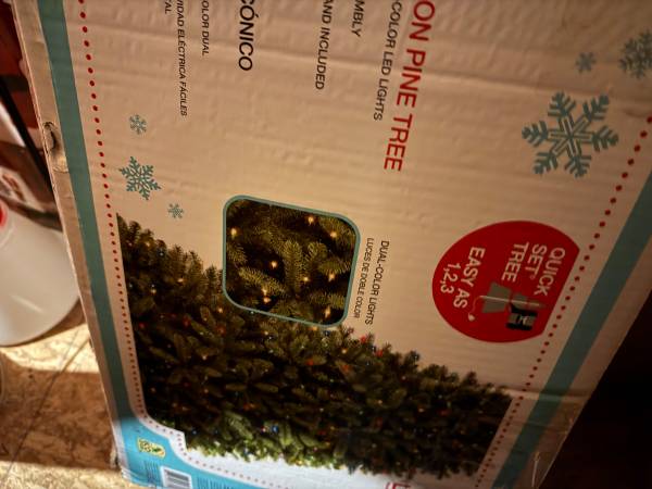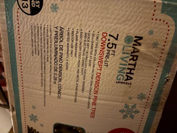Martha Stewart living Downswept Denison pine tree, 7.5 ft, pre-lit, dual color lights, good condition, cash only
