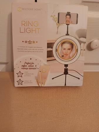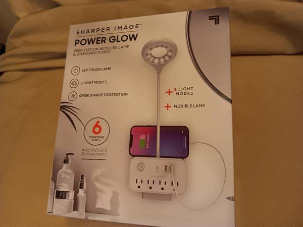 Ring light- $25 includes Features include ring light mirror, collapsible tripod, in-line remote, & phone mount. With 3 light temperature settings, 10 levels of brightness, and an 8 inch surface. Phone ring light- $15 includes Vibrant RGB color changing lights. Includes built-in mirror. Rechargable. Sharper Image Prep Station includes Prep station- $25 includes a flexible lamp with 3 light modes, with 4 outlets and 2 USB ports. GE Antenna- $10 features Ultra Edge Series, enhanced HDTV, universal. Full HD-1080p. HDTV/UHF/VHF