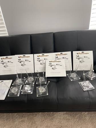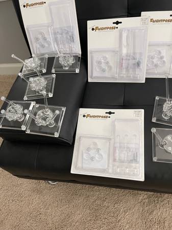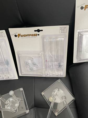 Super-strong, super-versatile-display stand with base for aircrafts, ships, robots or just about anything you want to display in an “in-flight” pose with a base and support arms made of sturdy clear acrylic with clear no slip rubber support “nubs”. No modification is necessary to display. Stability is great. You can display up to 2 pounds such as due-cast metal models without fear of toppling.