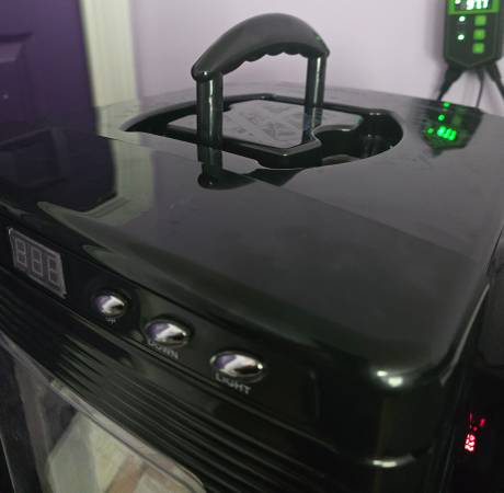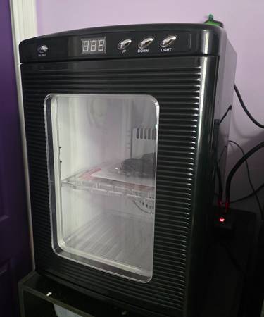 BRAND NEW incubater. Perfect condition. Has heating and cooling features. Digital readout. Power cords for your home or car. 2 shelves. Convenient handle. Blue light inside. Very nice incubater....