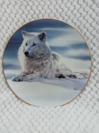 Hamilton Collection wolf plates with certificate of authenticity. "Solitude" by Al Agnew plate #0800B. "Winter's Dawn" by Jeff Tift plate #0249B. Plates are $15.00 each.