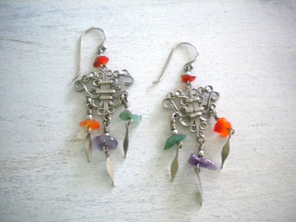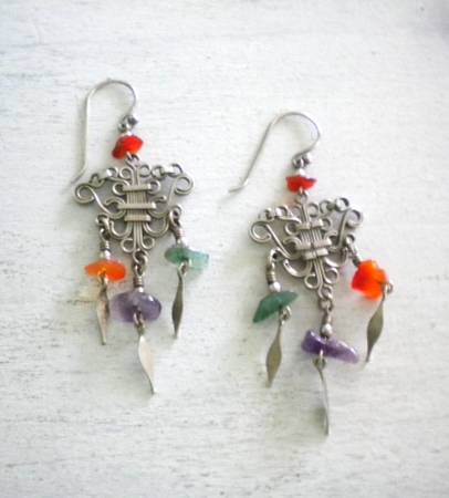VINTAGE 925 STERLING SILVER MULTISTONE EARRINGS 4 COLORED STONES 2.5" DANGLE EARRINGS NO TEXT CALL OR EMAIL