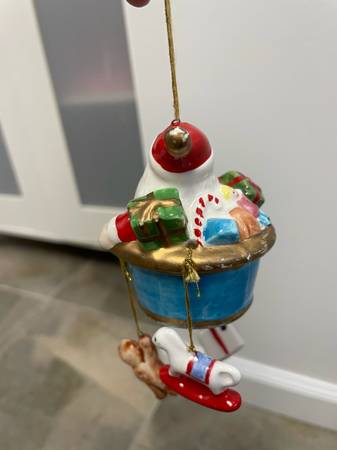 Vintage Christmas Ornament (china/ceramic)— Santa in a Hot Air Balloon . . . $3 Santa in a hot-air balloon basket and a bag of overflowing toys! Made of china/ceramic. Texts preferred. . . Pickup in...