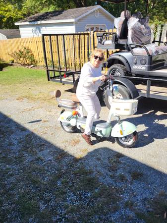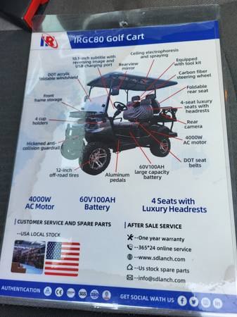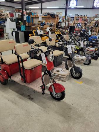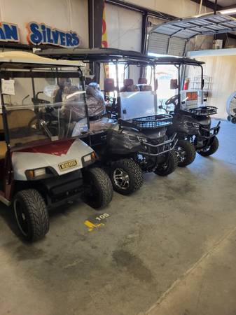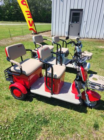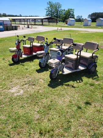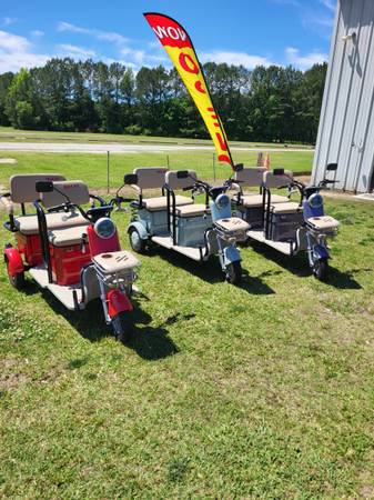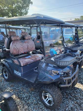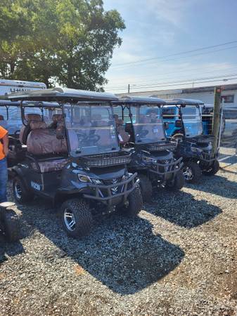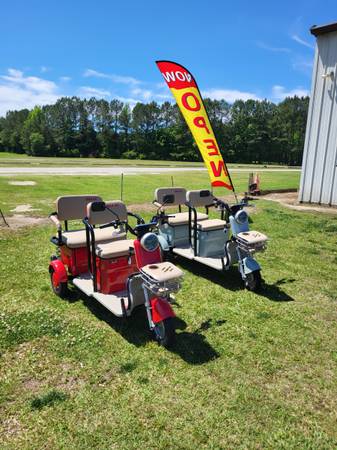 WOW! Selling NEW Golf Carts w/Charger! Colors are rich iridescent showing luminous colors that seem to change when seen from different angles. Carts have Too many features to list...But I will try! You have a fast 2 seater Cart with lights, turn signals and basket! Storage compartments are under the seats. Charger and Keys are included! These Carts are Excellent for Neighborhood Jaunts or a Family friendly "toy" for Grand Kids as a Yard Scooter! Have fun mobility down at the Boardwalk with a quiet electric Cart! These electric neighborhood golf carts offer top notch quality and unparalleled versatility. We also carry Luxury Golf Carts and Electric Bikes! DELIVERY is AVAILBLE! We are located at Tar River Flea Mkt. address is 1820 S. Wesleyan Blvd in Rocky Mount NC! Open 9-4 Fri, Sat and Sunday! Reasonable Offers are Welcomed! Thank You for Viewing Ad!