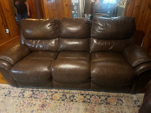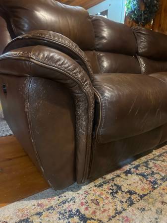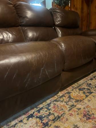 Very comfortable leather couch that electronically reclines on each end. Some wear and tear as indicated in the photos. Cash or Venmo only and must pick up.