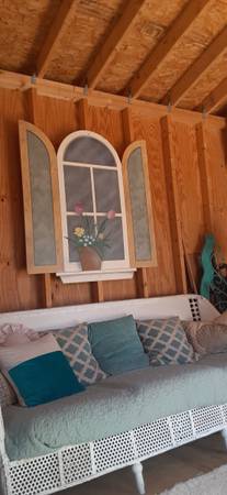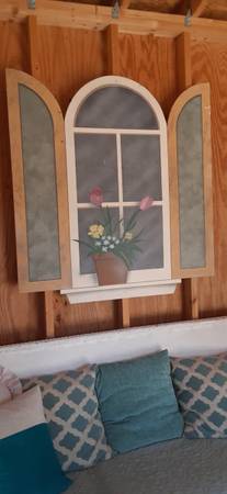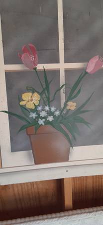 Cute faux window with flowers. Indoor r covered use only.