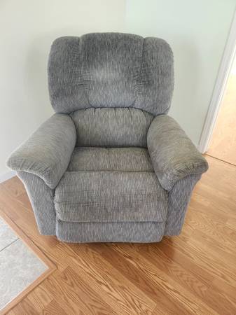 This is a very comfortable chair. Good condition. Color is like a tweed green/gray.
